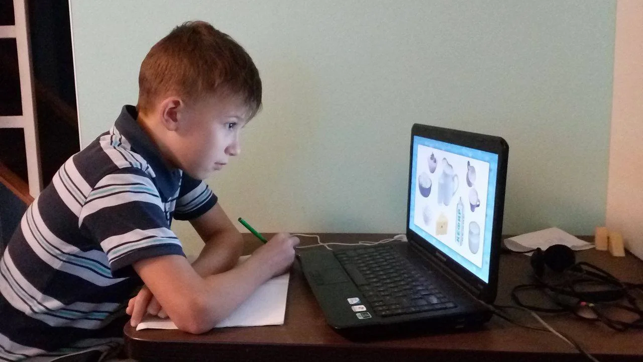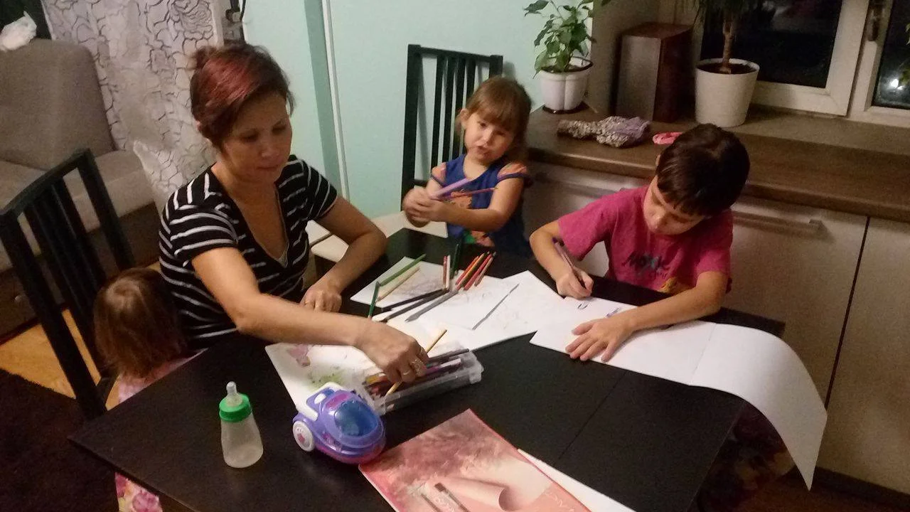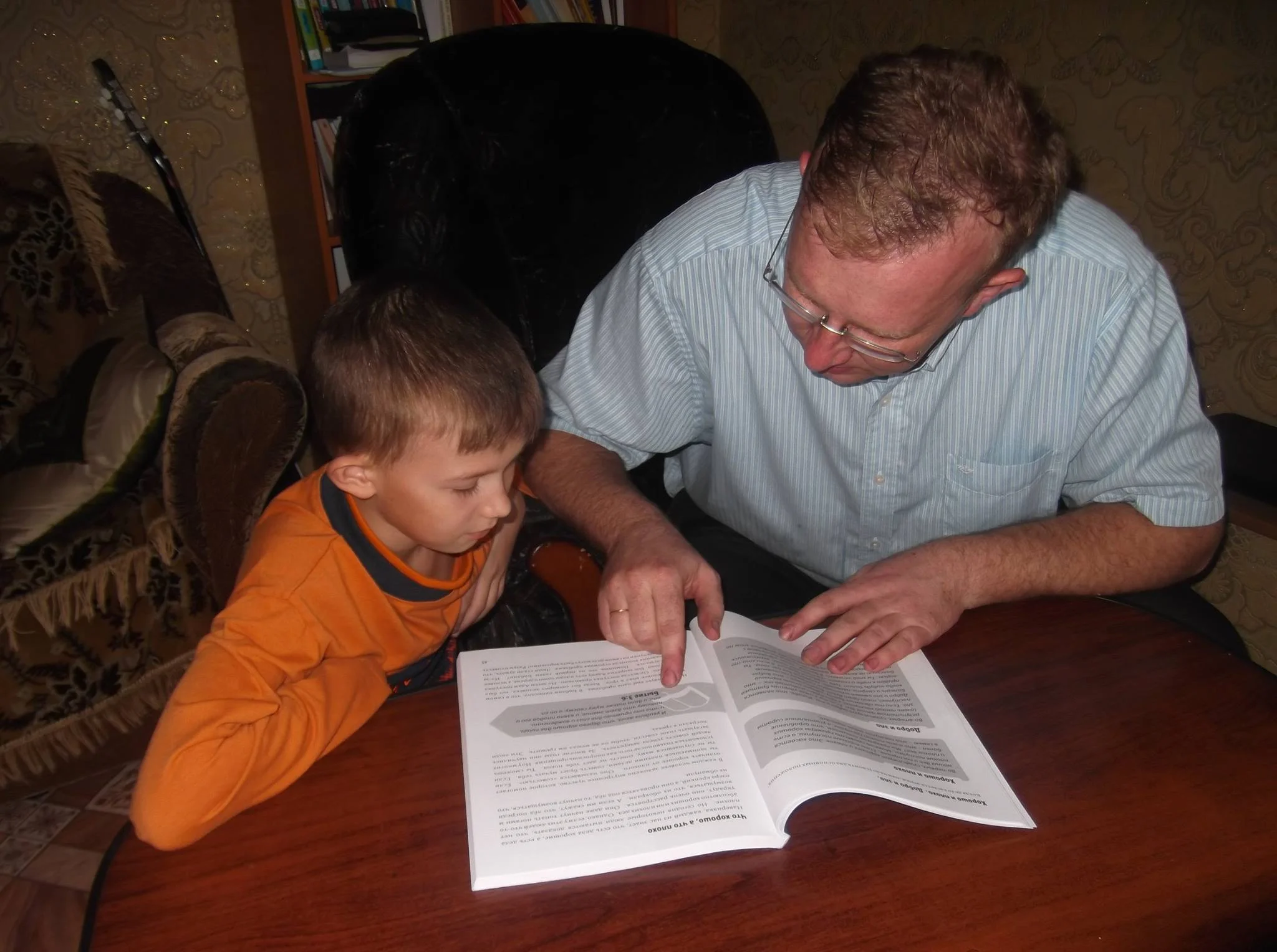 Jhenya helps his son Slava to gain an understanding of a new subject.
